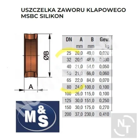 Uszczelka zaworu klapkowego silikon DN 80 MSBC M&S
